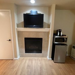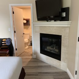 We spent one night here. Great customer service. Our room was clean, quiet and conveniently located within walking distance to the water. The very large, well decorated room was clean but dated. Some of the molding in the rooms seem to have a lot of water damage. The room furniture is nice but also has some damage. The lack of countertop in the bathroom was a bit annoying but nothing that mattered for one night. Our room had a huge jetted tub. The faucets on the tub were a bit old and difficult to turn, which made controlling the temperature difficult at times. There is a gas fireplace in the room, which was nice to have, especially in the chilly morning. The breakfast is lacking but nice to have. There is a fancy coffee machine that has several different coffee options. Breakfast is served in the lobby, which is very small and cramped. You will need to take your breakfast outside or back to your room, since there isn't a place to sit in the lobby itself.